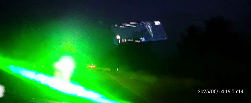 申先生车辆在道路上行驶时,其左前方的对向车道有一辆开着远光灯的车辆不断靠近。记者看到,这辆车在视频中呈现为移动的“光团”,看不清车子的外观。与此同时,一道绿色光源从车内射出。